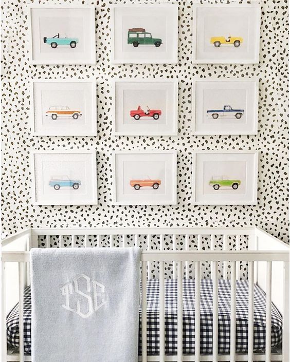 Framed art can go a long way in terms of decor and adding a colorful wall in your nursery - Consider fun colors for the matting and frames too! Don't be intimidated to create a gallery wall, wallpaper the room, or create a hand-painted mural. Performance fabrics are a practical option for upholstered pieces, which are stain resistant (Kravet and Thibaut have some great options!), or you can choose a linen cotton blend if you prefer no chemicals (try Pindler & Pindler or Colefax & Fowler fabrics).